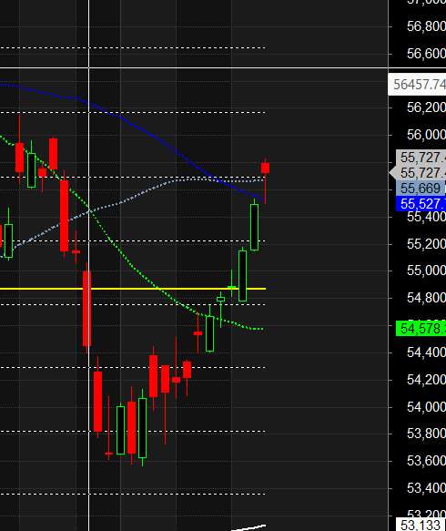 A breakout above the 15-minute high would signal a continuation of the powerful upward momentum, likely targeting the 56103/56200 zone.
