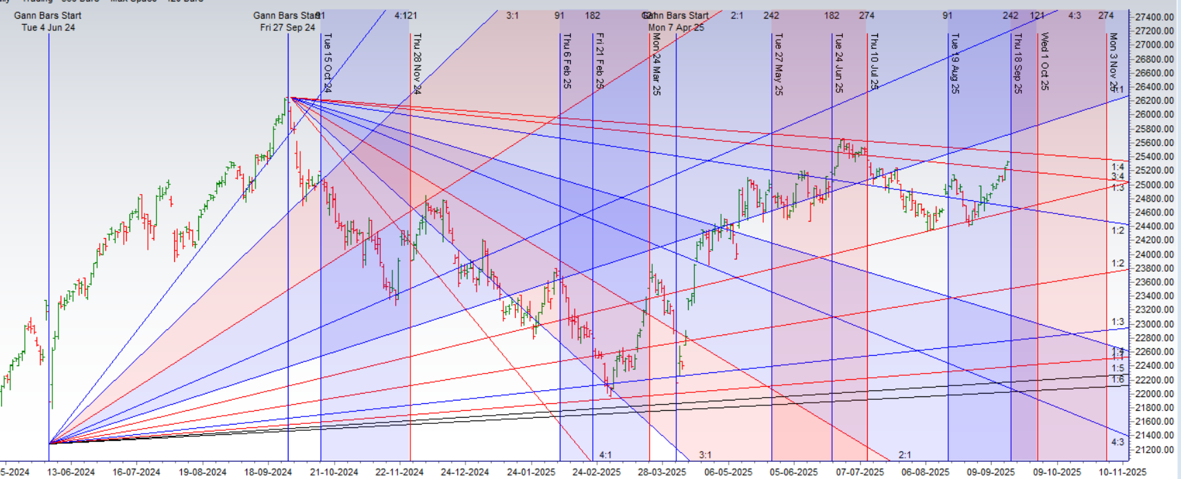 However, a failure to hold 25300 amidst this powerful confluence of timing cycles would signal that the “sell on news” reversal has more momentum, likely leading to a deeper correction.