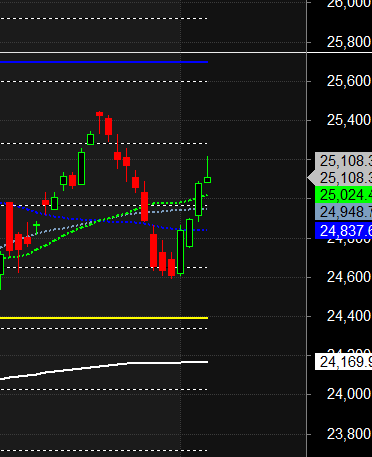 Nifty has closed above its 21 SMA @ 25024 Trend is Buy on Dips till above 25024