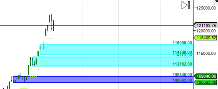 MCX GOLD Supply Demand Chart : Demand in range of 116900-117000 , Supply in range of 122000-122108