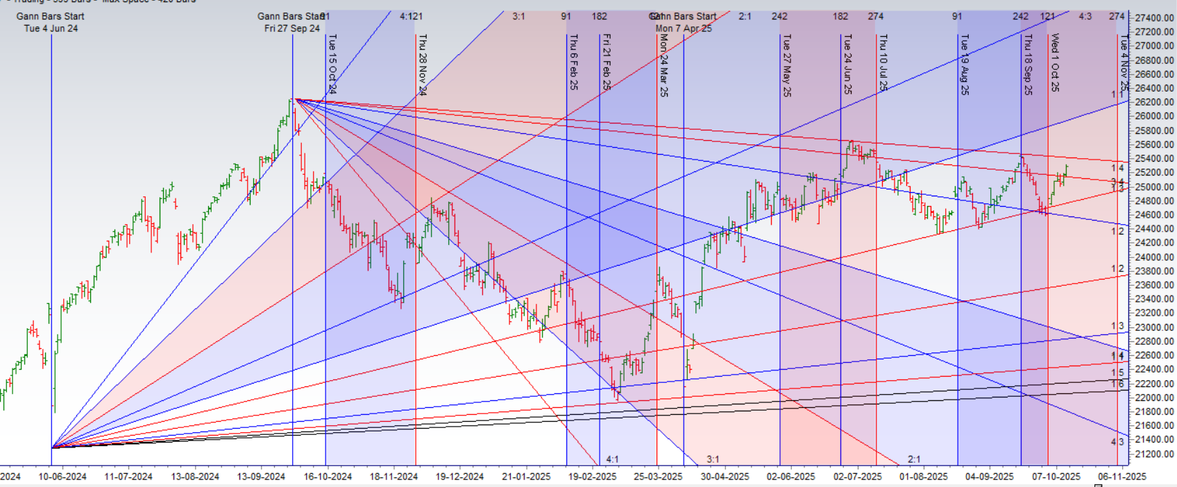 Sir, as per today 14-10-2025 : On 15 min TF -> At 9:30 AM sharp , nifty made low of 25152.30 and using above methodology , to get the next resistance, I have taken suare root of 25152.30 i.e 158.59 and then added 0.5 to it that is 159.09 and re-squared it and we got 25309.62 and Nifty took resistance at 25310.35 (1 point error). Thanks for suggesting this way.