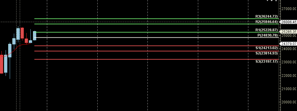 25400 is Monthly resistance zone 25018 is Monthly Support zone.