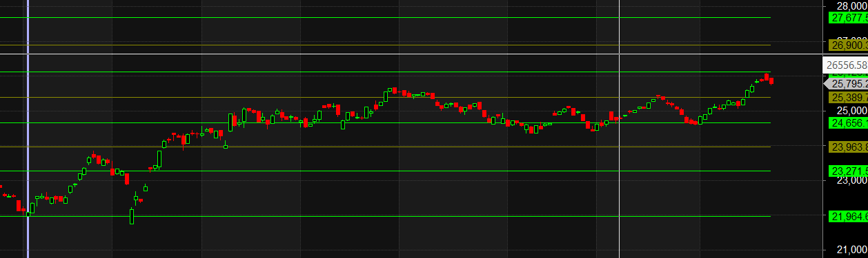 In the world of W.D. Gann, this “squaring” of a time cycle is one of the most powerful and reliable signals for a major trend reversal. It represents the completion of a grand cycle, a point of natural equilibrium where the energy that fueled the preceding trend is exhausted. This is not a minor signal; it is a long-term, structural red flag. This has established the level of 26104 as the critical macro “line in the sand.” As long as the bulls are unable to break this level, the bears will rule the market.
