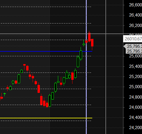 A decisive break and close below 25718 will activate the Gravestone Doji, confirming that the sellers have follow-through momentum. This is the most important short-term level for all traders to watch. A break of this level would be the starting gun for the next major downward leg.