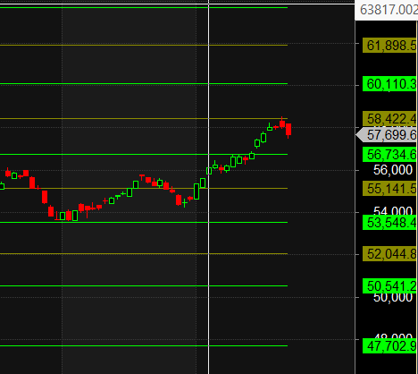 BANK Nifty Gann Monthly Trend Change level 56022 closed above it.