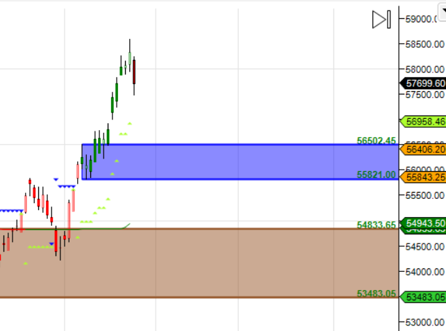 58066 is Monthly Resistance zone 56951 is Monthly Support zone.