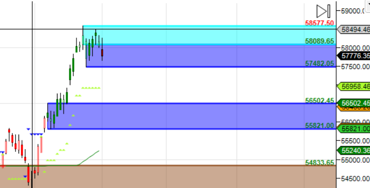 58066 is Monthly Resistance zone 56951 is Monthly Support zone.