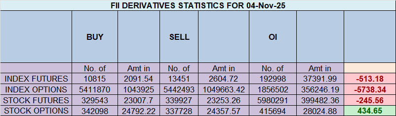 In the cash segment, Foreign Institutional Investors (FII) sold 3263 cr , while Domestic Institutional Investors (DII) bought 5283 cr.