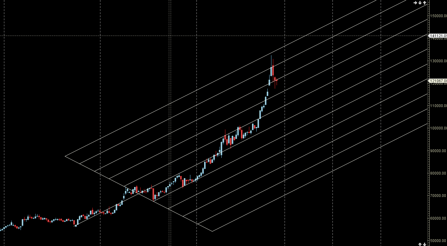 Gold is taking resistance at it 2×1 gann line at 123100