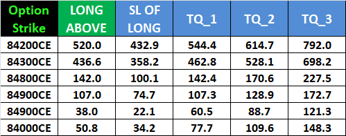 Buy Above 84595 Tgt 84742, 84889 and 85036 ( SENSEX Spot Levels)
