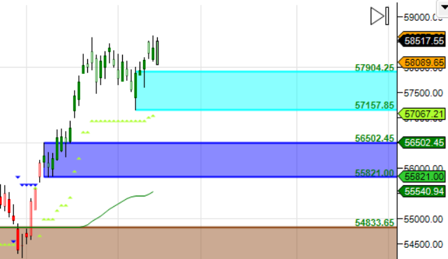 Bank Nifty Bears need to break 58000 and bull need a close above 58729
