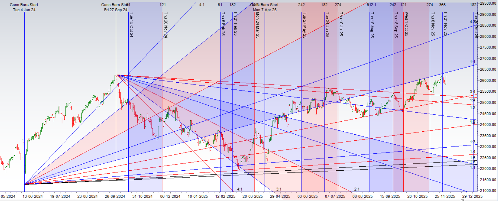 The Nifty 50 is near its all-time high of 26277 This powerful advance, which kicked off the December F&O series with a massive single-day rally, was not a random event. It was a textbook and anticipated outcome, driven by a powerful astrological and cyclical timing signal that we have been closely monitoring.