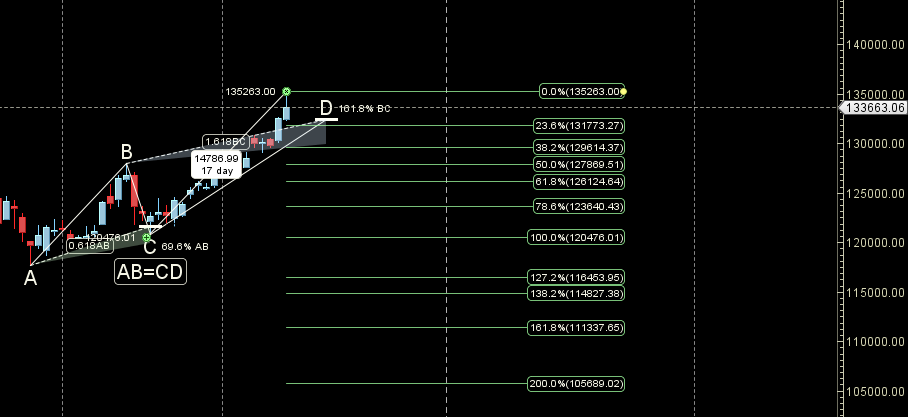 Weekly Resistance: 134328,135062,135798,136536,137276