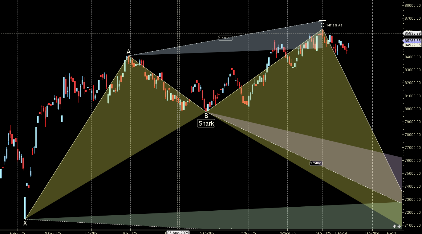 Sensex unable to cross SHARK pattern PRZ zone of 86000 fall towards 85000/84700