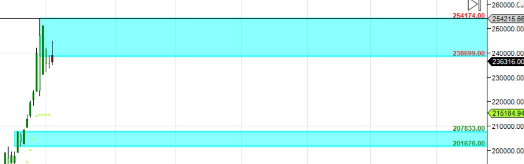 MCX SILVER Supply Demand Chart : Demand in range of 225-226 K , Supply in range of 250-252 K
