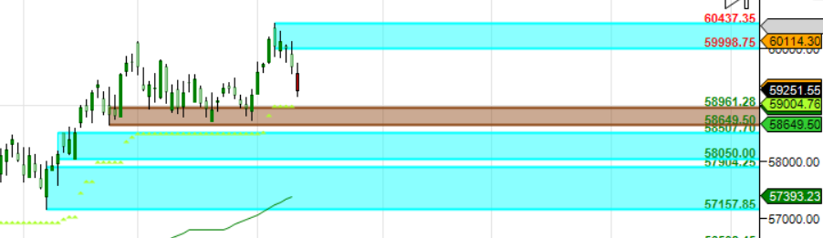 59500 is Monthly Resistance zone 58000 is Monthly Support zone.