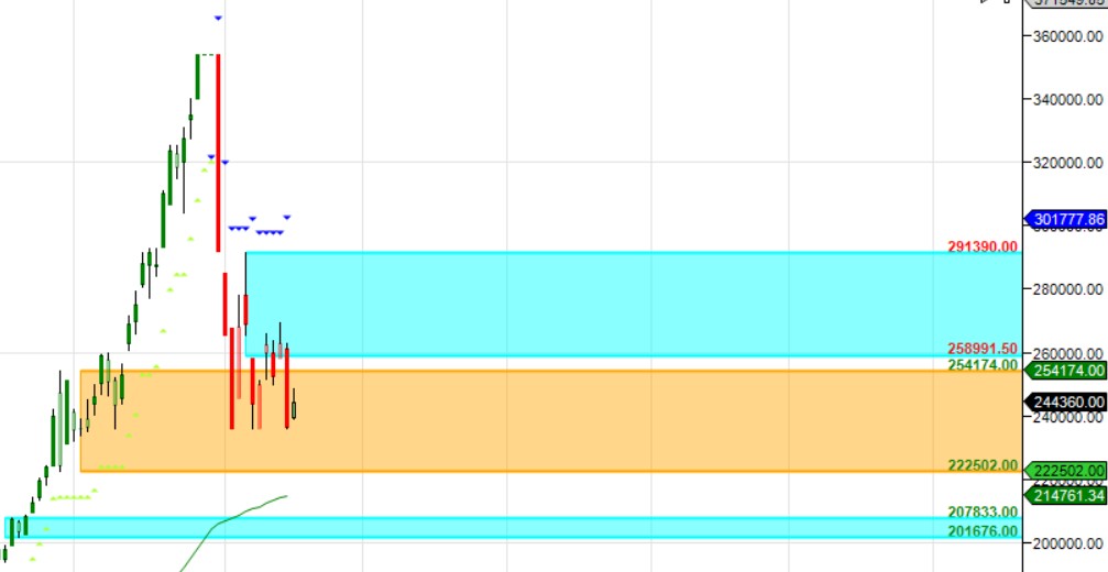 MCX SILVER Supply Demand Chart : Demand in range of 250-248 K , Supply in range of 258-260 K