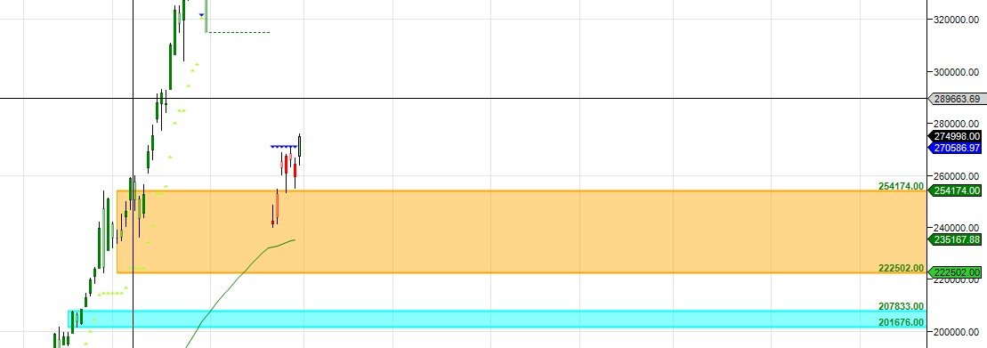 294 K Monthly Resistance and 256 K Monthly Support.