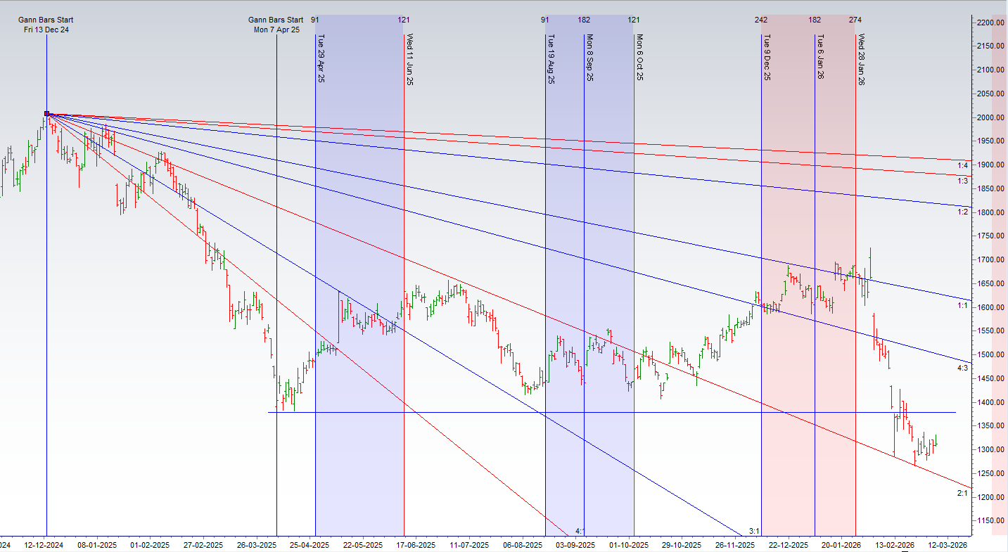 Gann — Indicators and Signals for Nifty Stocks 09-13 March 2026
