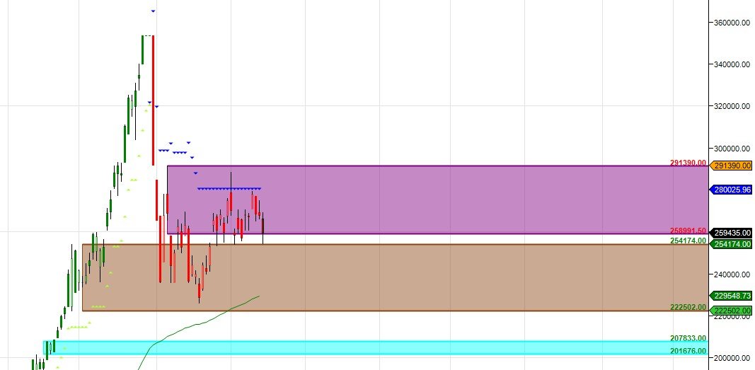 MCX SILVER Supply Demand Chart : Demand in range of 252-254 K , Supply in range of 260-262 K