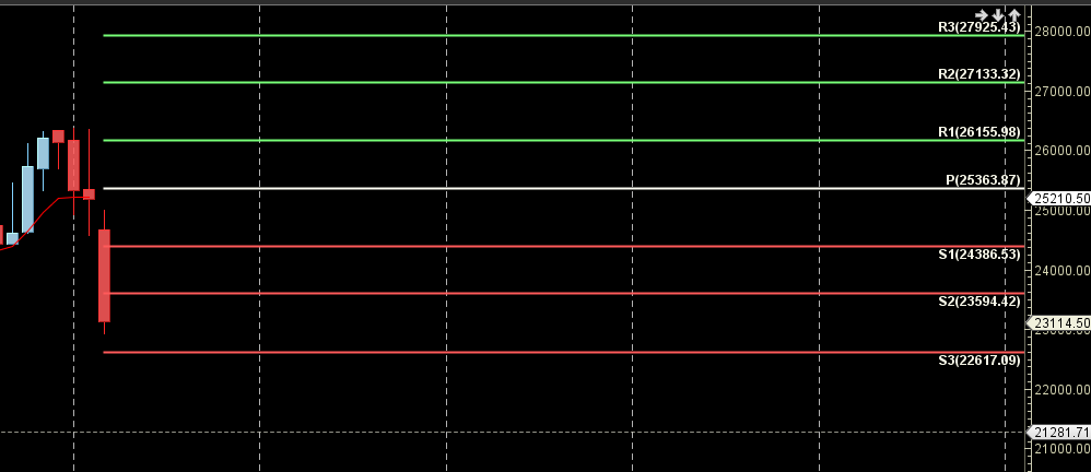 23594 is Monthly resistance zone 22617 is Monthly Support zone.