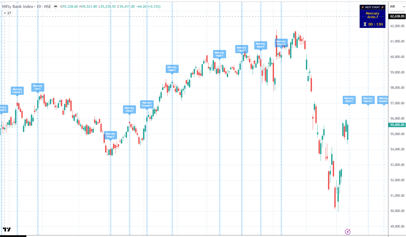 The Trigger: An inability by the bulls to achieve a close above 55,859.