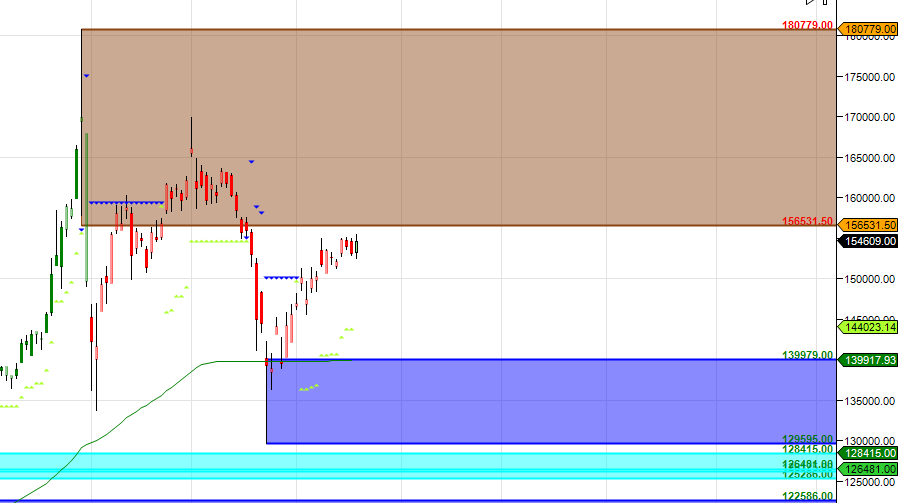 MCX GOLD Supply Demand Chart : Demand in range of 149-150 K , Supply in range of 155-156 K