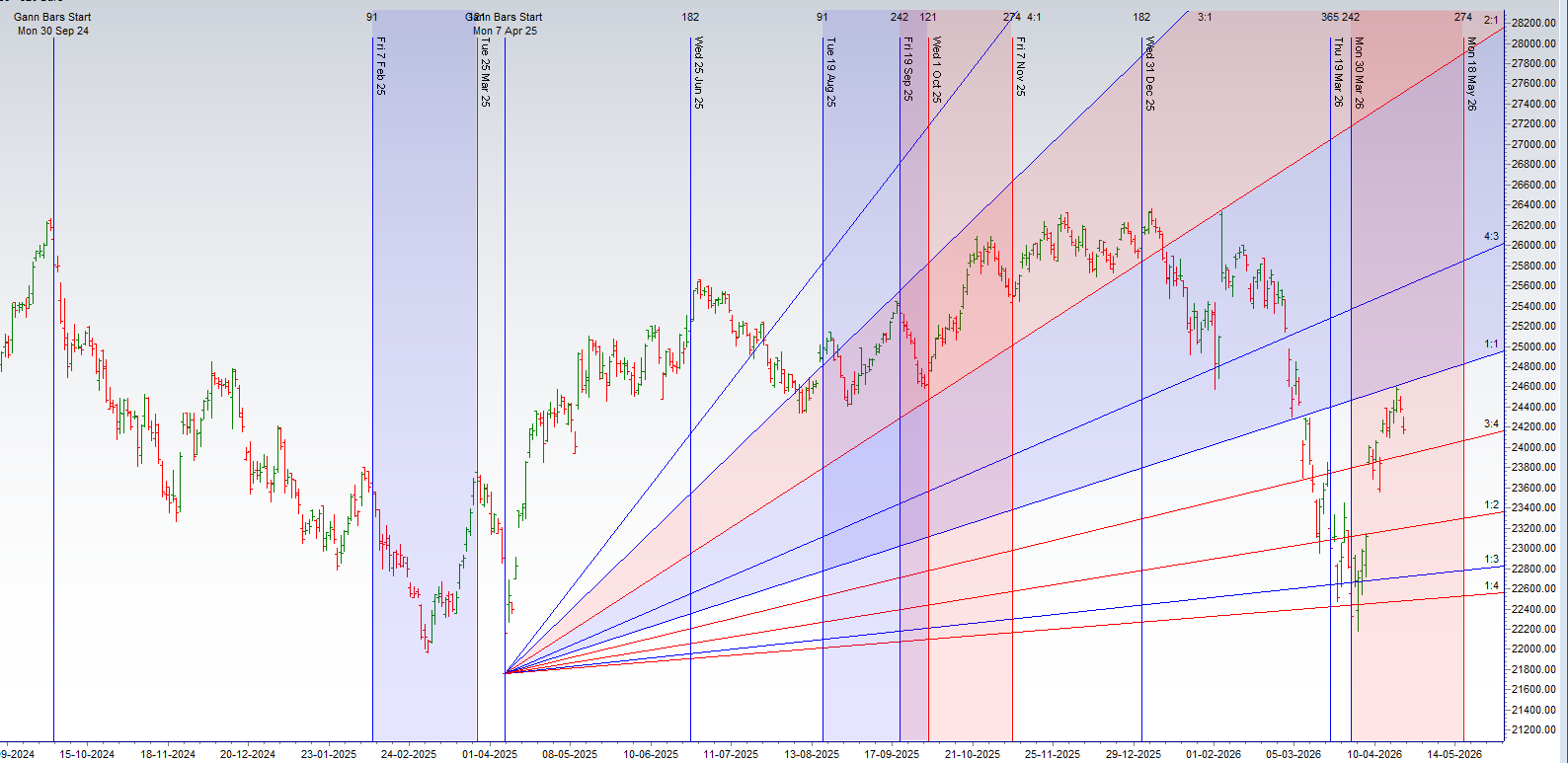 The Nifty has opened in a state of profound technical weakness, with a gap-down opening that was followed by a new lower low. This is a definitive signal that bears are in control of the immediate market sentiment and are pressing their advantage. However, this powerful bearish momentum is now colliding head-on with two major, pre-calculated cyclical events that have a history of marking significant trend reversals. The market is at a critical “make-or-break” point where these two immense forces will battle for control.
