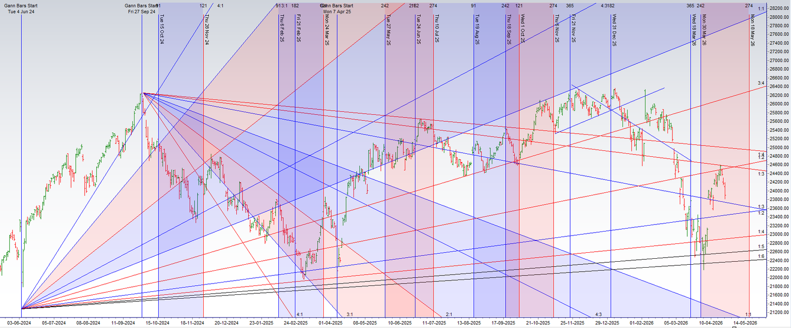 Price is trading near its 1×3 gann angle zone
