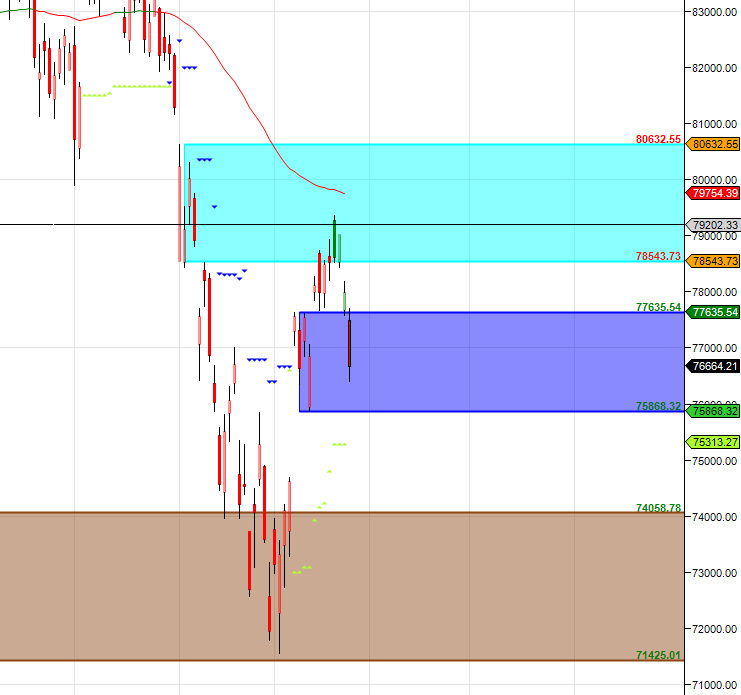 77777 is Monthly resistance zone 76000 is Support zone.