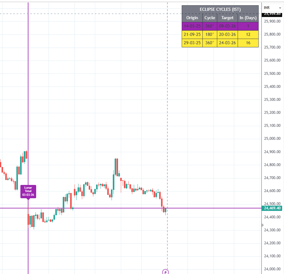 Cosmic-Veda [Grahan Chakra] is an institutional-grade timing engine that bridges the gap between Global Eclipse Events and Market Vibration Cycles, using advanced solar-degree geometry to project high-conviction trend reversal windows.